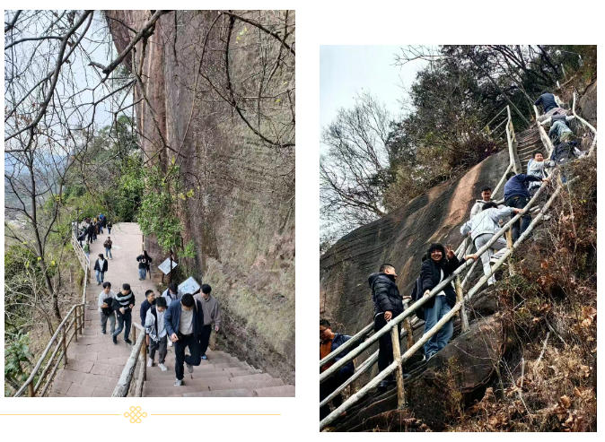 世界自然遗产——丹霞山,以600余座赤壁丹崖勾勒出雄、险、奇、秀、幽的地质诗篇。全员攀登长老峰,穿越陡峭石阶,终至观日亭。极目远眺,层峦叠嶂尽收眼底,一句“会当凌绝顶,一览众山小”道尽自然之伟岸。