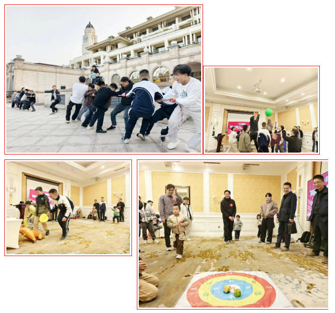 全体员工齐聚韶关碧桂园凤凰酒店,在宴会厅开展了丰富多彩的赢红包游戏,有沙包球、瑜伽排球、赶马入笼、拔河比赛等,游戏环节紧扣团队协作核心,考验队员间的配合度与凝聚力,每个人都收获满满。